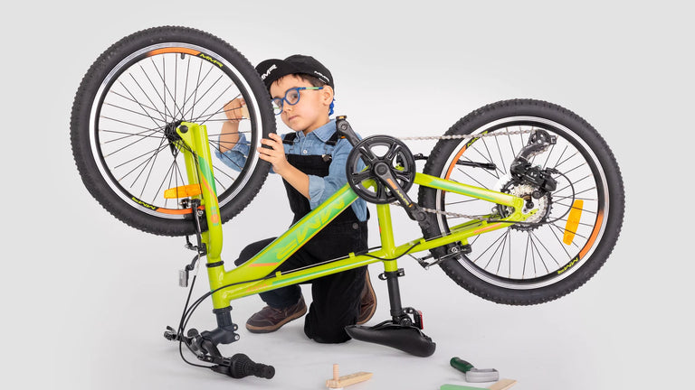 The 20-inch MMR Nippy is the perfect bike to awaken the adventurous spirit in children aged 5 to 7 (115-135 cm tall). Built with a robust and safe 6061 aluminum frame, this kids' MTB offers a tailored riding experience. It features a 7-speed Shimano drivetrain with a twist shifter (Revoshift) and aluminum V-Brakes—light, easy-to-use components that let young riders learn how to shift gears and enjoy their first bike with gears.